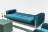 The Lucerne’s sleek silhouette is complemented by modern gold-tone legs, adding a touch of sophistication and stability. Matching accent cushions enhance both comfort and style, while the vibrant teal color provides a bold yet refined aesthetic that suits modern and classic interiors alike.